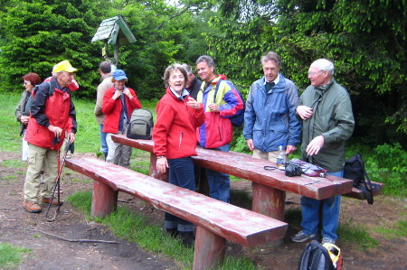 Traditionell ist der Besuch der Heidelkoppe, des Hausberges der Patschkauer. Das Bild zeigt Wanderer im Jahre 2009 bei der Gipfelrast.